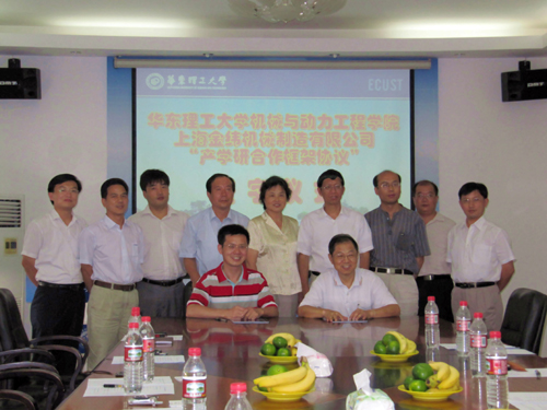2009年8月28日下午,上海金緯機械制造有限公司與上海華東理工大學建立“產學研”戰略聯盟合作會議在上海召開。雙方將發揮各自的優勢,通過科研項目、攻關課題、新產品開發和人才培訓等方面,在相互支持與發展中,構建以市場為導向、產學研結合的科技創新合作體系。
